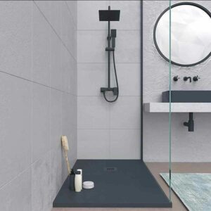 El Platon de douche en résine de la collection Graphite color Mystone est ultra fin, c’est-à-dire qu’il a une épaisseur globale réduite ce qui lui permet d’être monté au ras du sol ou au-dessus de celui-ci. Fabriqué en résine à charge minérale, texture ardoise et fini avec un gel coat antibactérien, il ajoutera de l’élégance à votre espace douche design car il possède une grille en acier inoxydable, thermolaquée dans la couleur du receveur de douche.