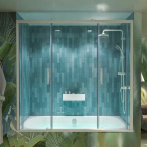 Façade de baignoire avec deux fixes et deux coulissantes.