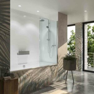 grâce à cette fiche Verre trempé de 6 mm épais, finition transparent, votre salle de bain paraîtra plus spacieuse et lumineuse. Les écrans de baignoire sont l’option la plus hygiénique et la plus résistante.
