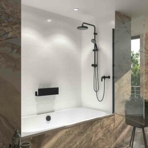 Pensez-vous que votre zone de baignade devrait être plus confortable et hygiénique? Avec le pare-baignoire rabattable Open, un Lame pivotante de 85 cm de large avec profil vertical aluminium noir mat, vous l’obtiendrez à coup sûr.