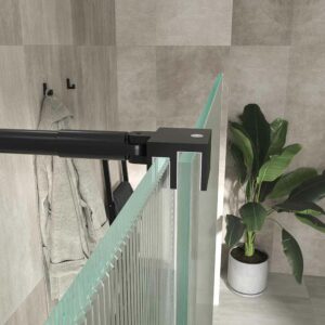 Les profils et les accessoires sont en acier inoxydable thermolaqué et le verre est nervuré de 8 mm. Cela en fait une paroi de douche coulissante résistante à l’usure qui prête également attention aux détails de conception.