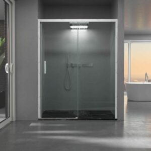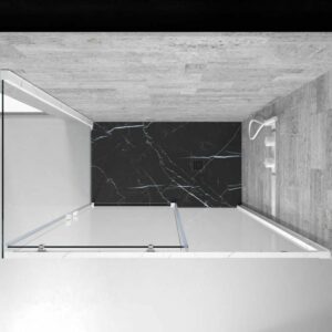 - Sa composition d’1 paroi de douche fixe et 1 coulissante permet de gagner de la place lorsqu’elle est petite ou peu encombrée.