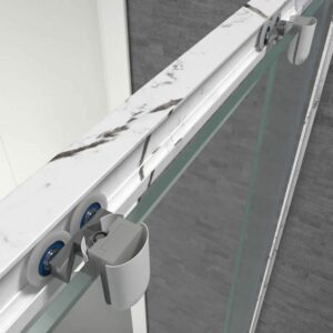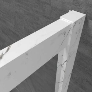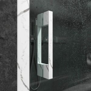 - Il est idéal pour les amateurs de design car il offre la possibilité de choisir les profilés au goût ou selon la décoration de votre salle de bain. Les options sont : aluminium anodisé effet marbre marquina noir ou calacatta mat. Ce dernier fait rêver les accros aux tendances déco.