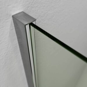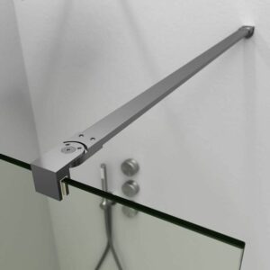 La paroi de douche fixe ZEN a Verre trempé de 8 mm d’épaisseur, un petit profilé mural en aluminium anodisé argent brillant et un bras de serrage en acier extensible de 70cm à 100cm pour donner une plus grande stabilité à la paroi de douche.
