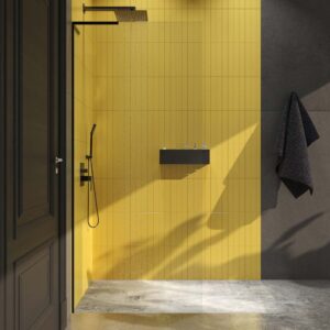 La paroi de douche fixe ZEN a Verre trempé de 8 mm d’épaisseur, un petit profil mural en aluminium noir mat et un support de fixation murale minimaliste en finition noir mat pour donner une plus grande stabilité à la paroi de douche.