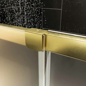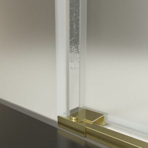 Paroi de douche frontale AXER 1 fixe – 1 porte coulissante verre mat 6 mm. ACIER INOXYDABLE finition OR MAT
