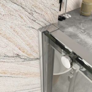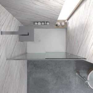 - Particulièrement recommandé pour les receveurs de douche dont la façade est supérieure à 120 cm, de sorte qu’il laisse un espace d’entrée minimum de 50 cm.