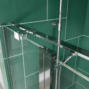 - Façade de douche composée d’une porte battante avec une petite façade fixe. Réversible (dites-nous la position d’ancrage).