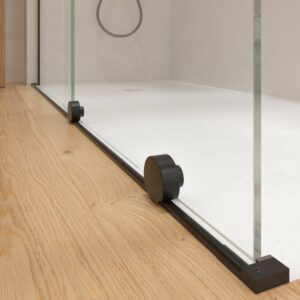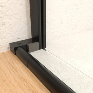 - L’épaisseur du verre trempé est de 8 mm dans la partie fixe et dans la partie coulissante.