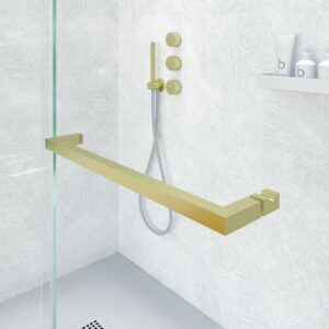 - La profils en acier inoxydable en or mat contribue à améliorer une cabine de douche aux lignes épurées et à l’aspect minimaliste.