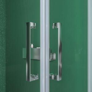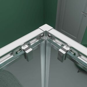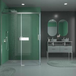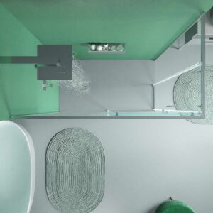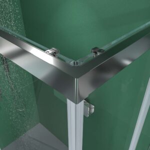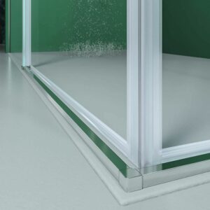 La paroi de douche angulaire BASIC a quatre feuilles de verre trempé de 6 mm d’épaisseur (pour le moment uniquement disponible dans une finition incolore), elle n’inclut pas de guide inférieur et elle inclut un anticalcaire en standard. De plus, parmi les nouveautés que ce modèle intègre, il y a des profils latéraux plus étroits et un design raffiné, ainsi qu’un système de montage très simple pour que tout client puisse placer sa nouvelle cloison à la maison s’il le souhaite.