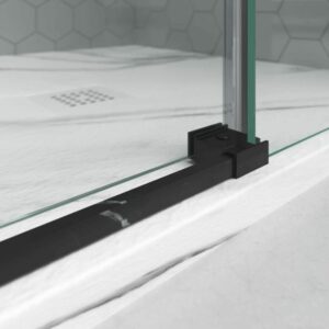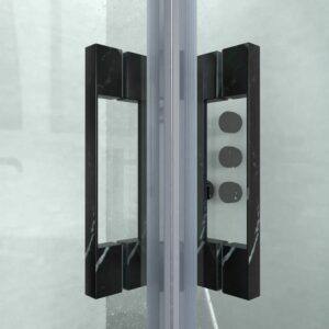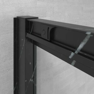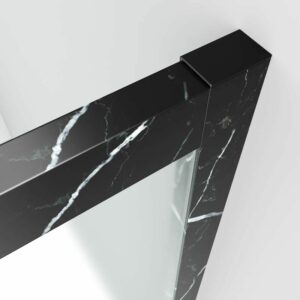 Les profils de cet écran de salle de bain sont en aluminium marquina noir, qui, avec les lignes raffinées et sa poignée assortie, confère une sensation d’espace et de lumière à laquelle il est impossible de résister.