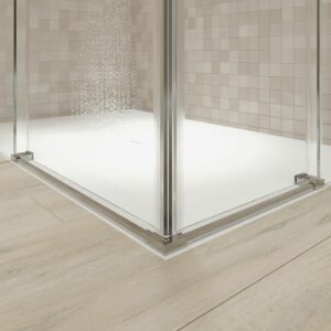 L’absence de profil bas laisse l’accès à la douche libre de saillies et assure une entrée sans risque de chute.