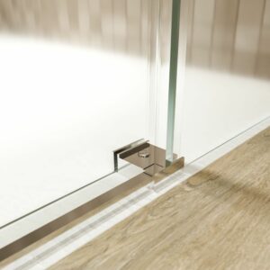 Les profils de cet écran de salle de bain sont en aluminium anodisé chrome brillant, qui, avec les lignes raffinées et sa poignée assortie, confère une sensation d’espace et de lumière à laquelle il est impossible de résister.