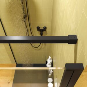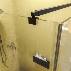Son verre trempé incolore de 6 mm est anticalcaire , indispensable pour prolonger la durée de vie de la nouvelle cloison et ne pas avoir à passer beaucoup de temps à la nettoyer.