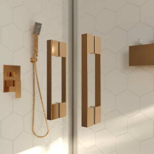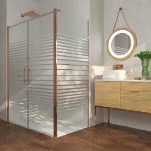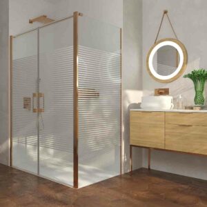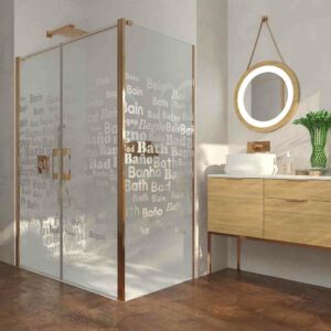 Paroi de douche rectangulaire OPEN 1 fixe – 2 portes battantes SÉRIGRAPHIÉES sur mesure. CUIVRE MAT