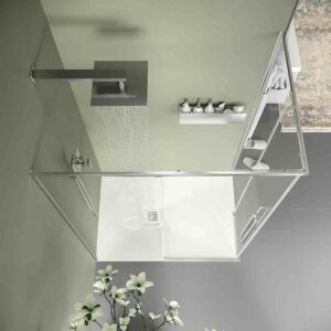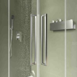 Sa double porte coulissante et ses parties fixes sont idéales pour une installation à proximité d’obstacles tels que les toilettes ou le lavabo, car aucun centimètre supplémentaire n’est nécessaire pour ouvrir la paroi de douche.
