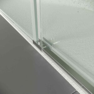 - Il manque un profil plus bas, qui offre confort et sécurité d’accès, en plus d’être plus hygiénique, puisque le calcaire ne s’accumule pas sur le rail.