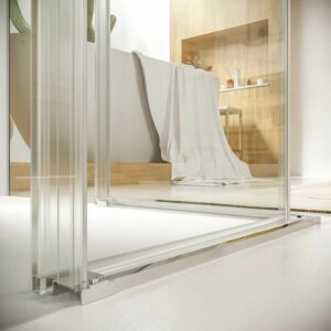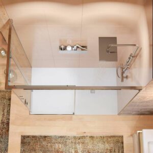 C’est aussi un écran sans profil bas. Cela signifie qu’il n’a pas besoin d’une structure ou d’un cadre en bas, ce qui permet une entrée confortable et sans marche dans la douche. Il donne également un look plus moderne et minimaliste.