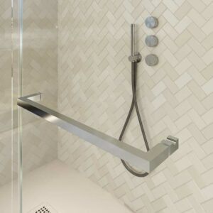 Profils disponibles en chrome brillant, spécialement traités pour être en contact avec l’eau et l’humidité.