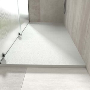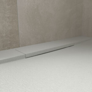 Le receveur de douche réalisé avec les résines modèles de dernière génération PLÂTRE de couleur gris ciment, il présente un design moderne, avant-gardiste et unique. C’est la fusion entre une plaque lisse et une avec cadre. Il est fini en GEL COAT antibactérien et en texture ardoise. Peut être coupé en taille. La grille cache une grande vanne de débit.