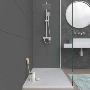 El Platon de douche en résine de la collection de couleurs Mystone Arena est ultra-mince, c’est-à-dire qu’il a un épaisseur globale réduite ce qui lui permet d’être monté au ras du sol ou au-dessus de celui-ci. Fabriqué en résine à charge minérale, texture ardoise et fini avec un gel coat antibactérien, il ajoutera de l’élégance à votre espace douche design car il possède une grille en acier inoxydable, thermolaquée dans la couleur du receveur de douche.