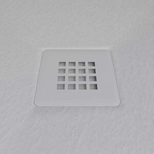- Grille en acier inoxydable thermolaqué. Siphon accessible.