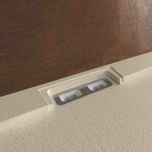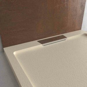 El plaque de douche réalisé avec des résines modèles de dernière génération STYLE de couleur crème, il présente un design moderne, avant-gardiste et unique. C’est la fusion entre une plaque lisse et une avec cadre. Il est fini en GEL COAT antibactérien et en texture ardoise. Peut être coupé en taille. La grille cache une grande vanne de débit.