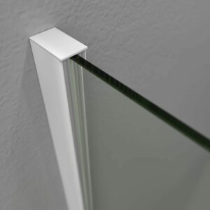 La paroi de douche fixe ZEN a Verre trempé de 8 mm d’épaisseur, un petit profilé mural en aluminium blanc mat et un bras de serrage en acier extensible de 70cm à 100cm pour donner une plus grande stabilité à la paroi de douche.