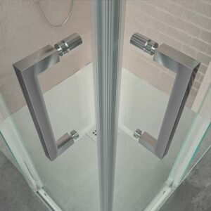 - Les profilés de la paroi de douche d’angle AXER sont en acier inoxidable. Un matériau très résistant à l’usure et à l’humidité.