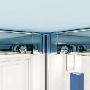 È anche uno schermo senza un profilo inferiore. Ciò significa che non necessita di struttura o cornice nella parte inferiore, consentendo un ingresso comodo e senza gradini alla doccia. Dà anche un aspetto più moderno e minimalista.