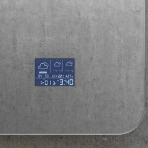 Comme vous pouvez le constater, il comporte de nombreux éléments optionnels pour faire de votre miroir un produit unique et différent. Par exemple miroir grossissant, haut-parleurs anti-buée ou Bluetooth, station météo, horloge.