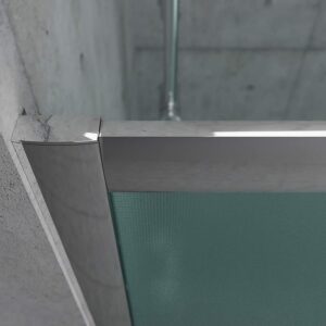 • Paroi de douche avant 1 fixe – 1 porte coulissante avec profil inférieur, profil anodisé chrome brillant, verre de sécurité trempé 6 mm, hauteur 195 cm. installation facile.